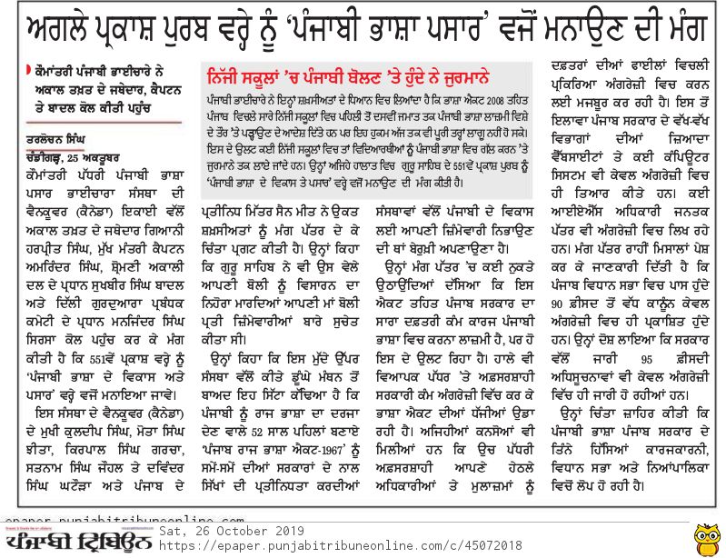ਕਨੇਡਾ ਪ੍ਰਤੀਮੰਡਲ ਵਲੋਂ -ਅਕਾਲ ਤਖਤ ਨੂੰ ਬੇਨਤੀ ਪੱਤਰ pbpb_admin May 31, 2025 Post Views: 174 ਬੇਨਤੀ ਪੱਤਰ ਦਾ ਲਿੰਕ: https://punjabibpb.com/wp-content/uploads/2025/05/6.-Akal-Takhat-20.10.2019.pdf ਮੀਡੀਆ ਸਹਿਯੋਗ