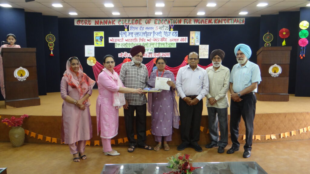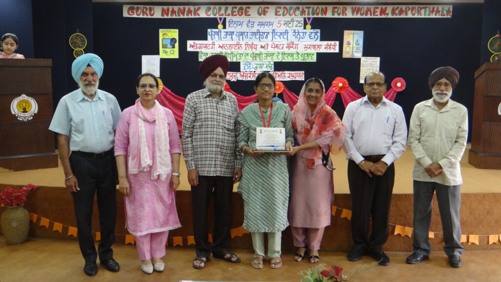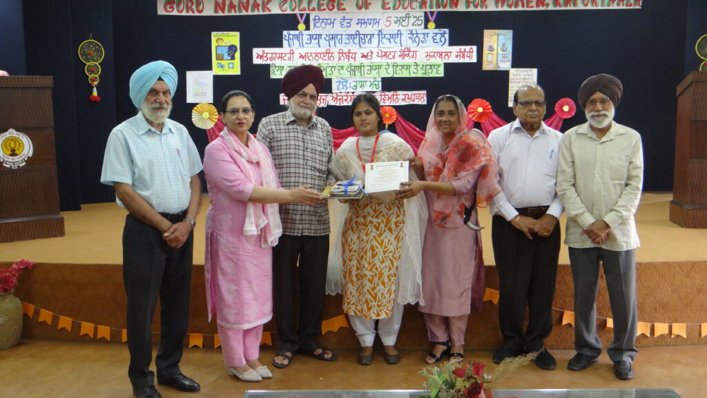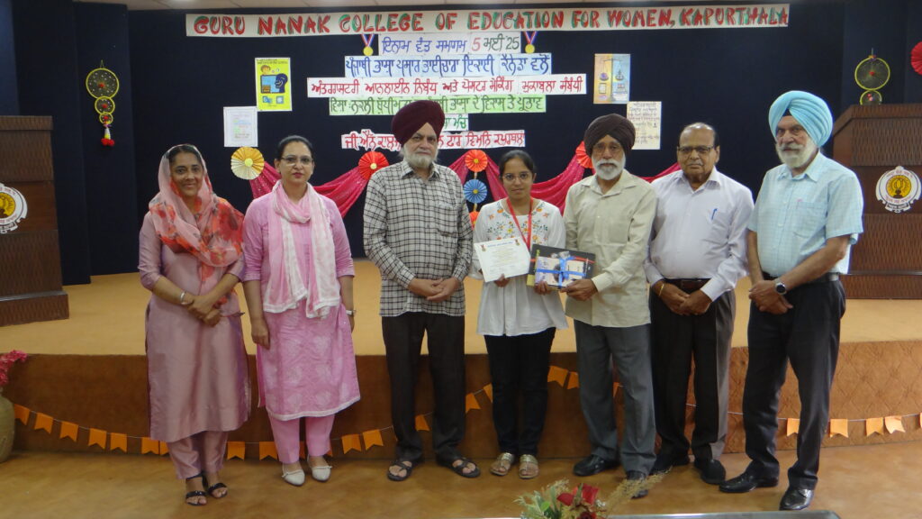 ਕਿਉਂਕਿ ਇਸ ਮੁਕਾਬਲੇ ਵਿੱਚ ਯੋਗਦਾਨ ਪਾਉਣ ਲਈ ਗੁਰੂ ਨਾਨਕ ਕਾਲਜ ਆਫ਼ ਐਜੂਕੇਸ਼ਨ ਫਾਰ ਵੀਮੈਨ ਕਪੂਰਥਲਾ ਦੇ ਦਸ ਵਿਦਿਆਰਥੀਆਂ (ਨਿਬੰਧ ਲਈ: ਪਰਭਨੂਰ ਕੌਰ, ਜਸਮੀਤ ਕੌਰ, ਸਿਮਰਨਜੀਤ ਕੌਰ, ਅਰਸ਼ਦੀਪ ਕੌਰ, ਪ੍ਰੀਆ, ਅਮਨਦੀਪ ਕੌਰ ਅਤੇ ਸੁਮਨਪ੍ਰੀਤ ਕੌਰ ,ਅਤੇ ਪੋਸਟਰ ਲਈ: ਜਸਮੀਤ ਕੌਰ, ਕਿਰਨਜੀਤ ਕੌਰ, ਵਰਨਜੀਤ ਕੌਰ ਅਤੇ ਅਵਨੀਤ ਕੌਰ ਵਿਦਿਆਰਥੀਆਂ) ਨੂੰ, (ਪ੍ਰਮਾਣ ਪੱਤਰਾਂ, ਮੈਡਲਾਂ ਅਤੇ ਪੁਸਤਕਾਂ ਨਾਲ) ਸਨਮਾਨਿਤ ਕੀਤਾ ਜਾਣਾ ਸੀ ਇਸ ਲਈ ਭਾਈਚਾਰੇ ਦੀ ਟੀਮ ਵੱਲੋਂ ਫੈਸਲਾ ਕੀਤਾ ਗਿਆ ਕਿ ਇਨ੍ਹਾਂ ਹੋਣਹਾਰ ਵਿਦਿਆਰਥੀਆਂ ਨੂੰ ਮਿਲ ਕੇ, ਆਪਣੇ ਹੱਥੀਂ ਸਨਮਾਨਿਤ ਕੀਤਾ ਜਾਵੇ। ਇਹੋ ਇੱਛਾ, ਇਨ੍ਹਾਂ ਵਿਦਿਆਰਥੀਆਂ ਨੂੰ ਪ੍ਰੇਰਿਤ ਕਰਨ ਵਾਲੀ, ਪੰਜਾਬੀ ਵਿਭਾਗ ਦੀ ਸੁਘੜ ਅਧਿਆਪਕਾ ਪ੍ਰੋ ਸਪਨਾ ਸੈਣੀ ਅਤੇ ਪ੍ਰਿੰਸੀਪਲ ਮਨਜੀਤ ਕੌਰ ਦੀ ਵੀ ਸੀ। ਜਿਕਰ ਯੋਗ ਹੈ ਕਿ ਜਸਮੀਤ ਕੌਰ ਨੇ ਦੋਵੇਂ ਮੁਕਾਬਲਿਆਂ ਵਿੱਚ ਹਿੱਸਾ ਲਿਆ।